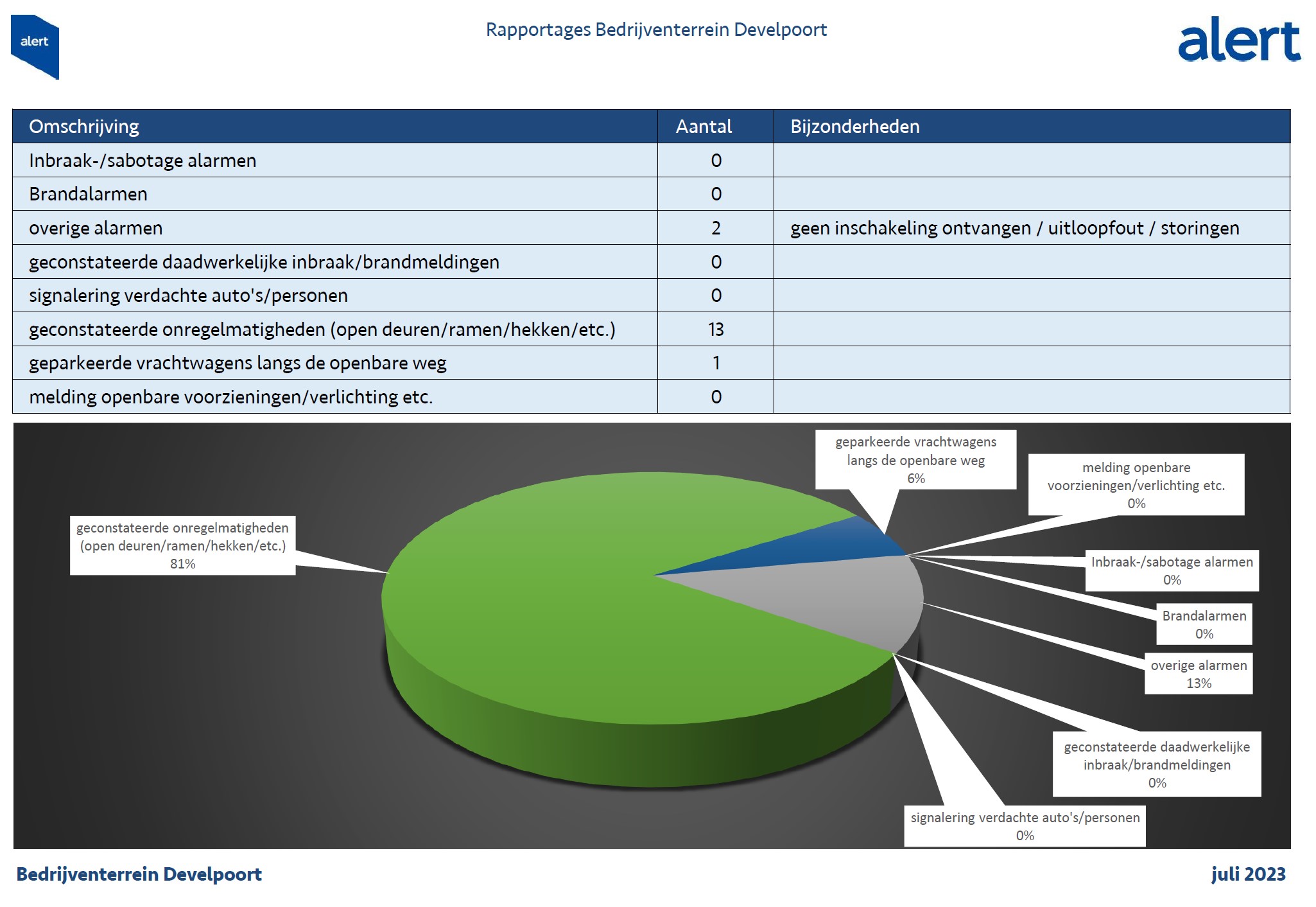 Hier ziet u een overzicht van de meldingen die zijn geregistreerd in de rapportages van juli 2023.